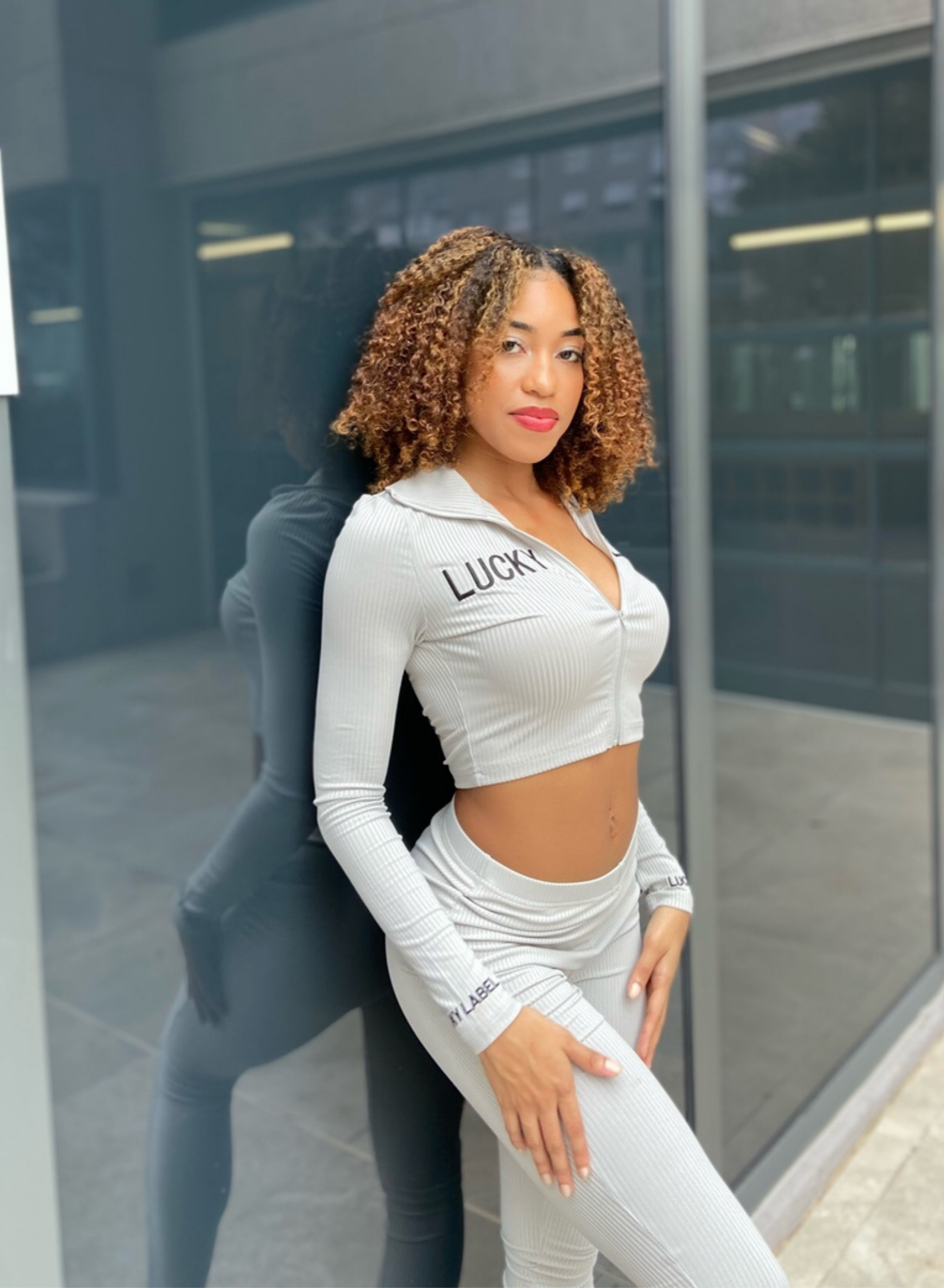 We are taking athletic wear to a new level in this 2 piece Lucky Label with zip up jacket (sold in Black, Grey, Purple)